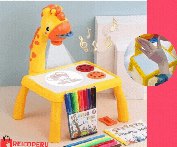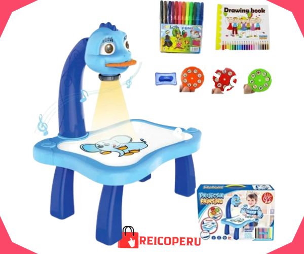 Mejora la capacidad de dibujo de los niños gracias al práctico sistema de iluminación integrado, contribuye en el desarrollo de las habilidades de motricidad fina y capacidad cognitiva en los niños al usar herramientas de dibujo como proyección, colores, papel o pinturas
